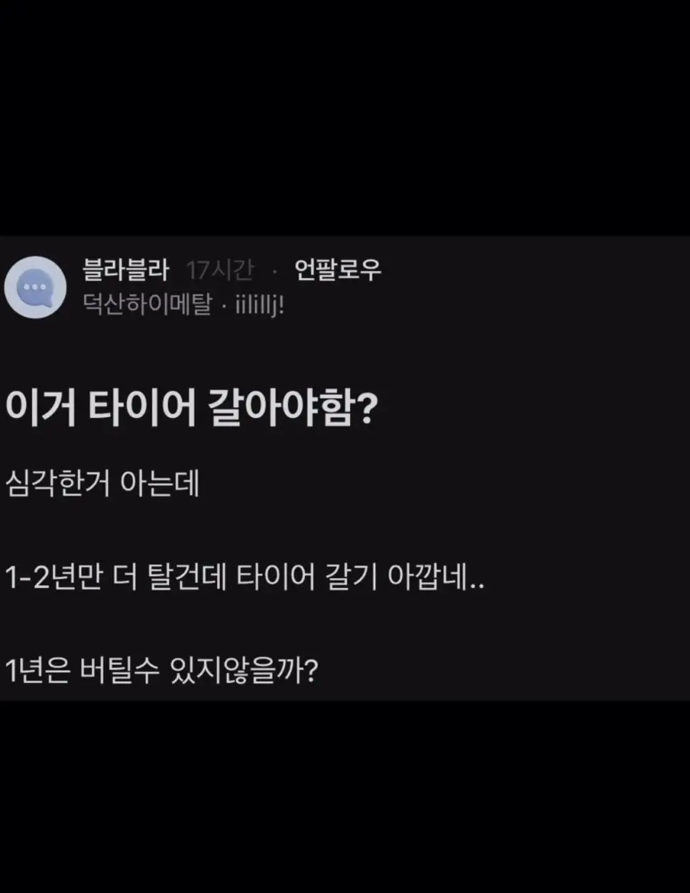 타이어 교체해야 되냐는 블라인 ㄷㄷㄷ