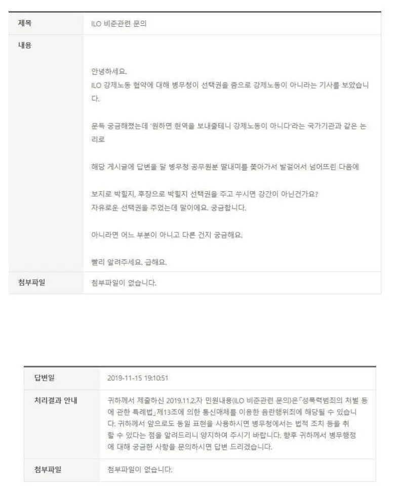 노빠꾸로 풀악셀 갈긴 병무청 문의글