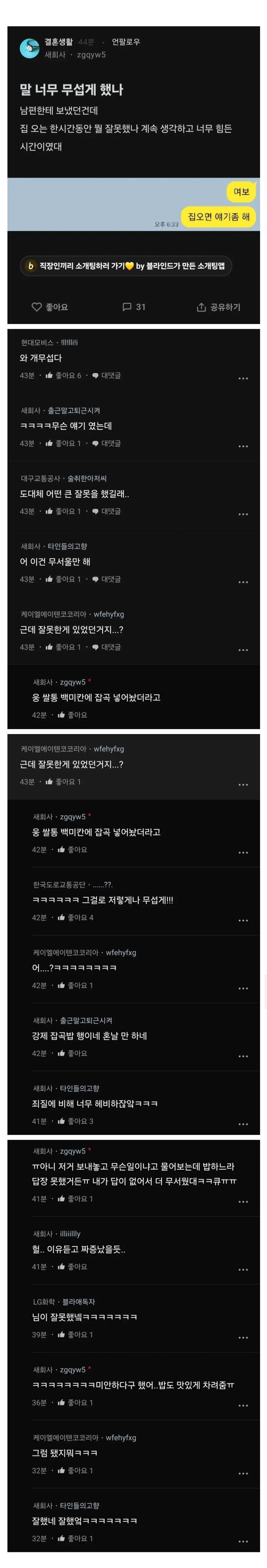 女: 남편이 내일 갑자기 죽으면 어쩌지...?
