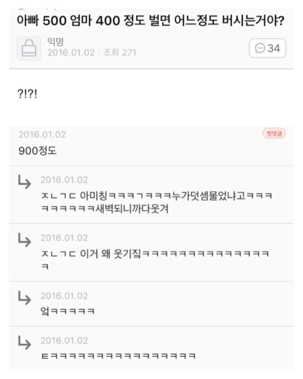 아빠 500 엄마 400 정도 벌면