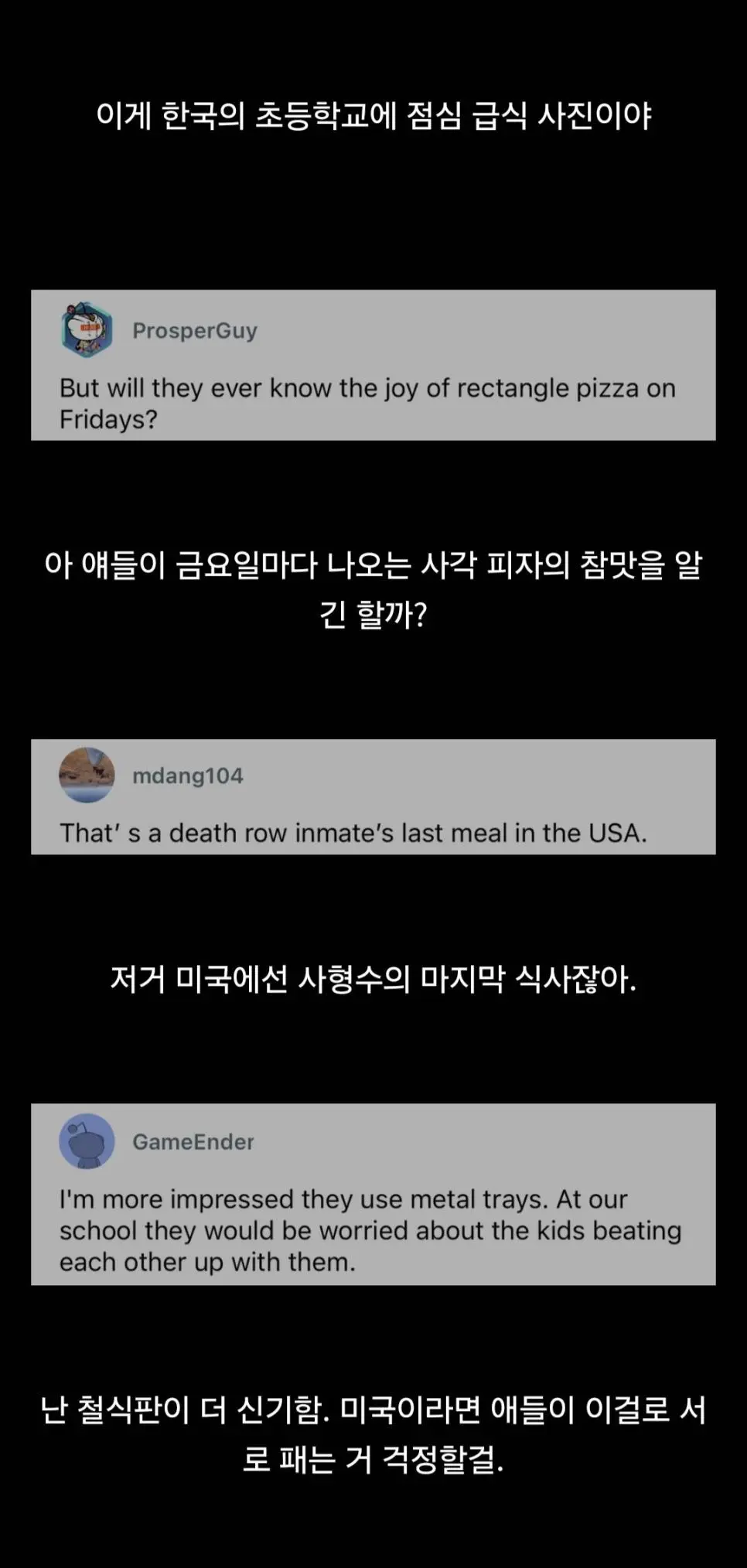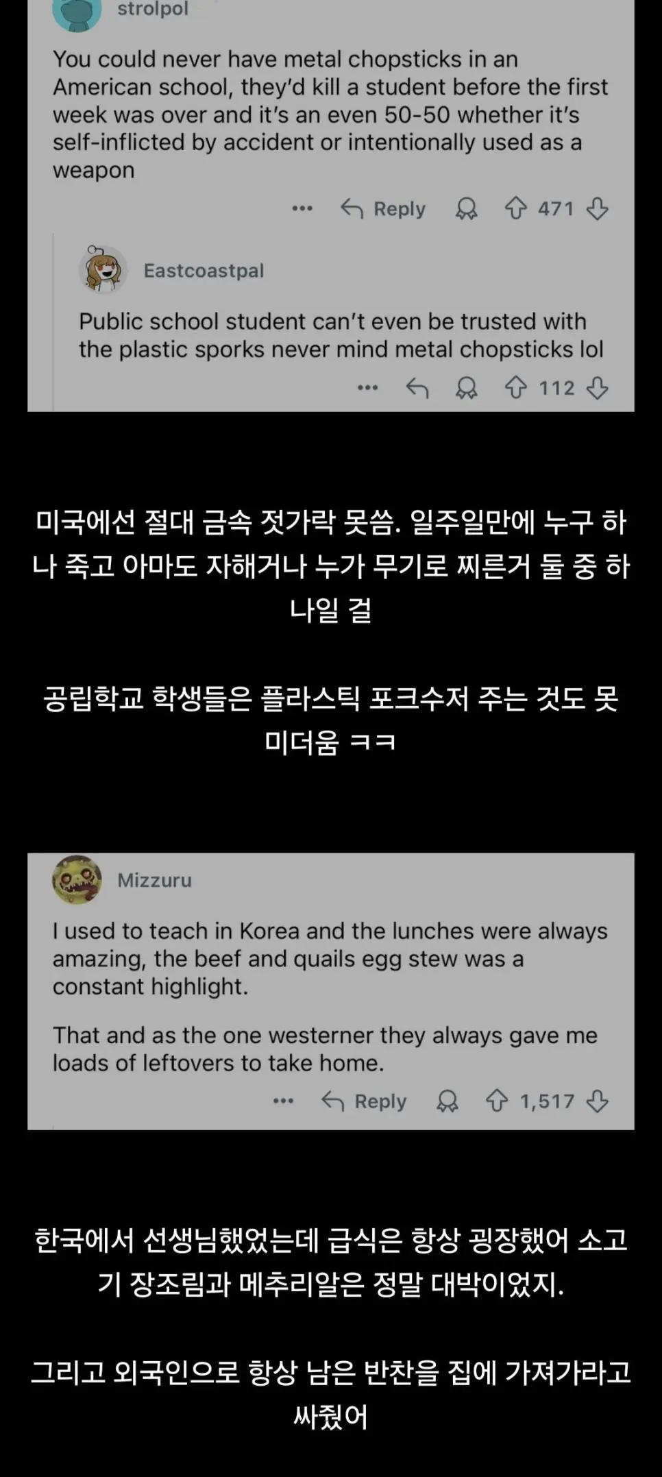 레딧 대문에 올라온 한국 급식 그리고 반응