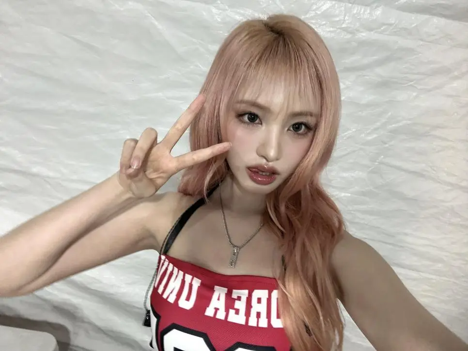 화려한 황금빛 란제리 + 검정핫팬츠 안유진