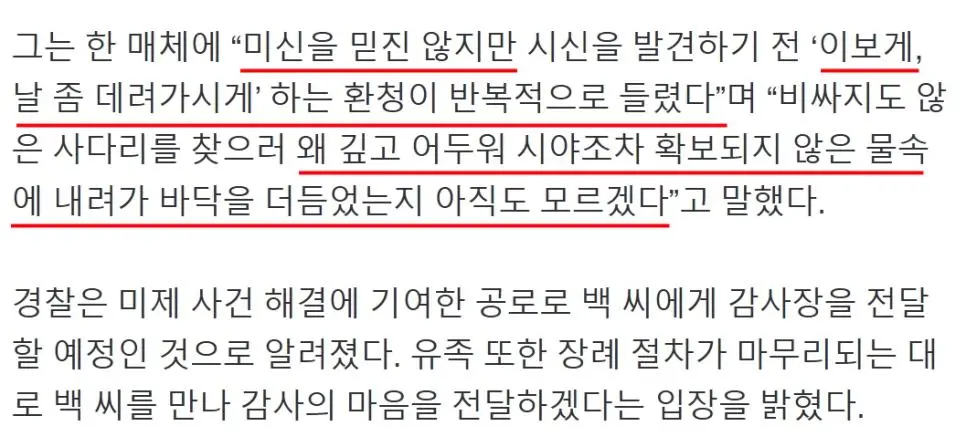 “‘날 좀 데려가게’ 환청이”…15년 전 실종 시신 찾은 구조대장