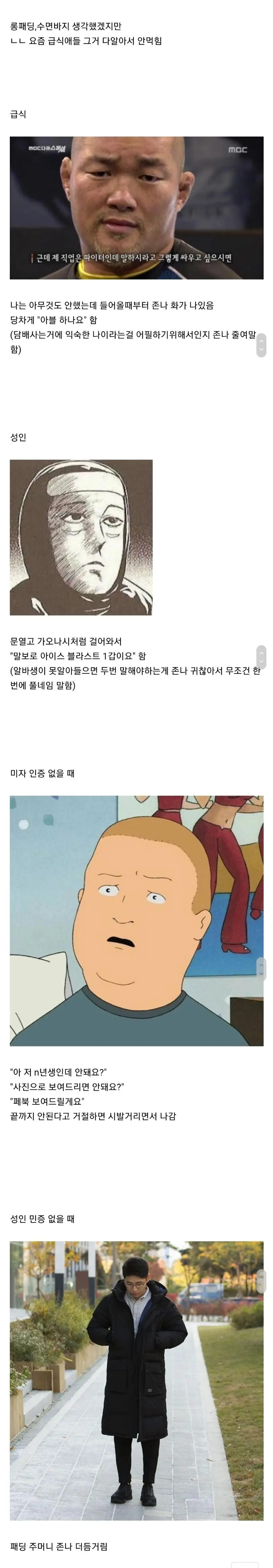 편의점에서 술담배 사가는 급식-성인 차이점