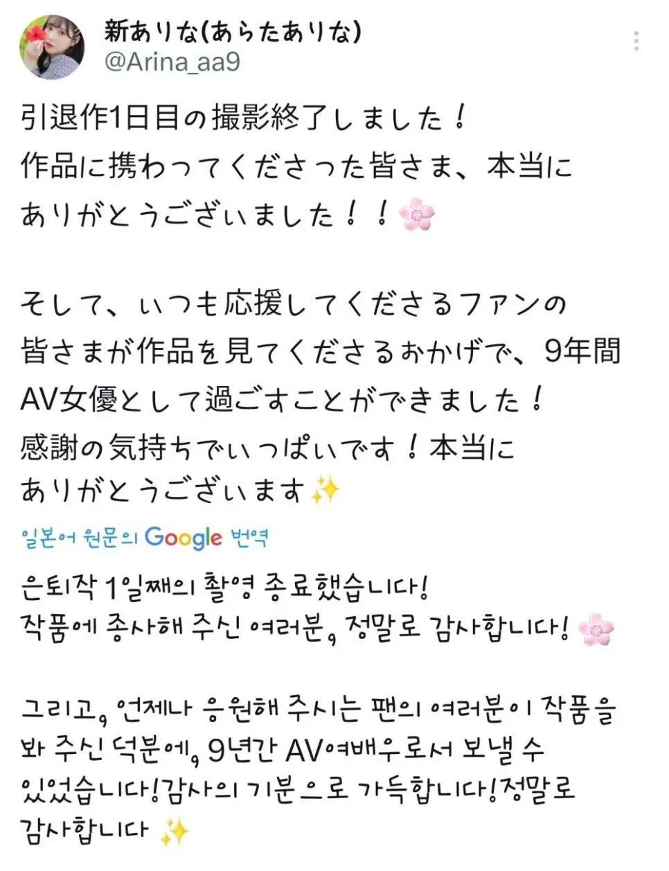 은퇴작 촬영했다는 배우