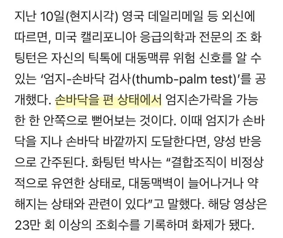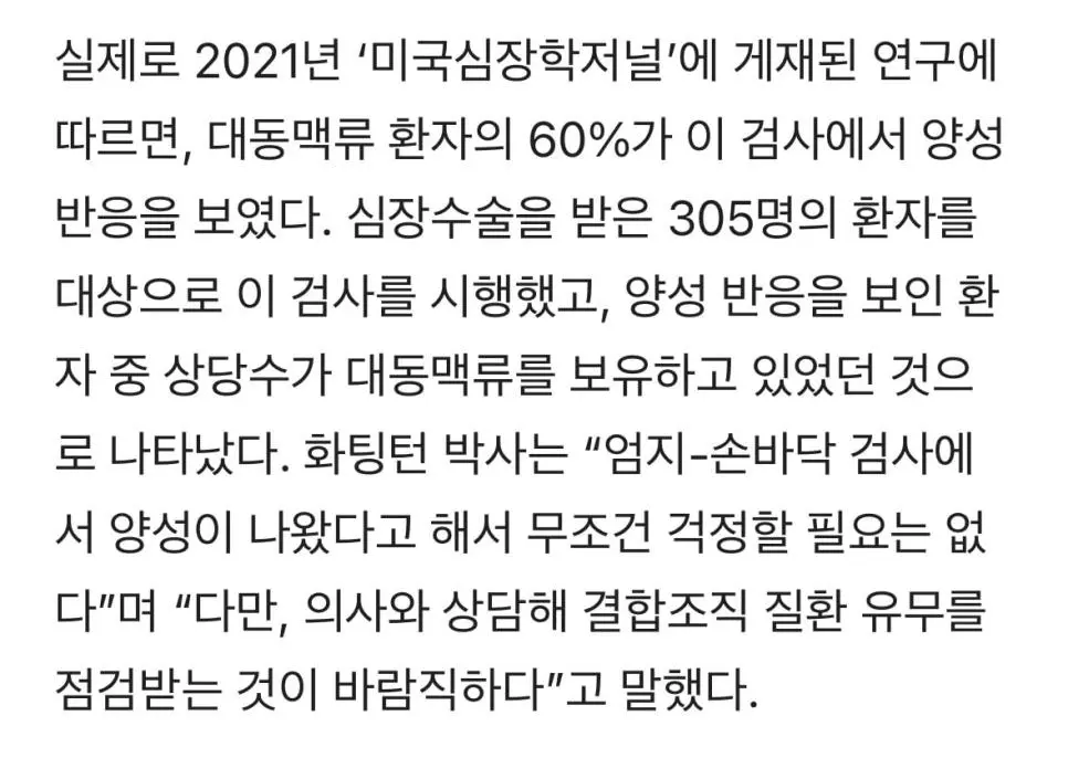 엄지 손가락으로 대동맥류 간단 테스트 해보기