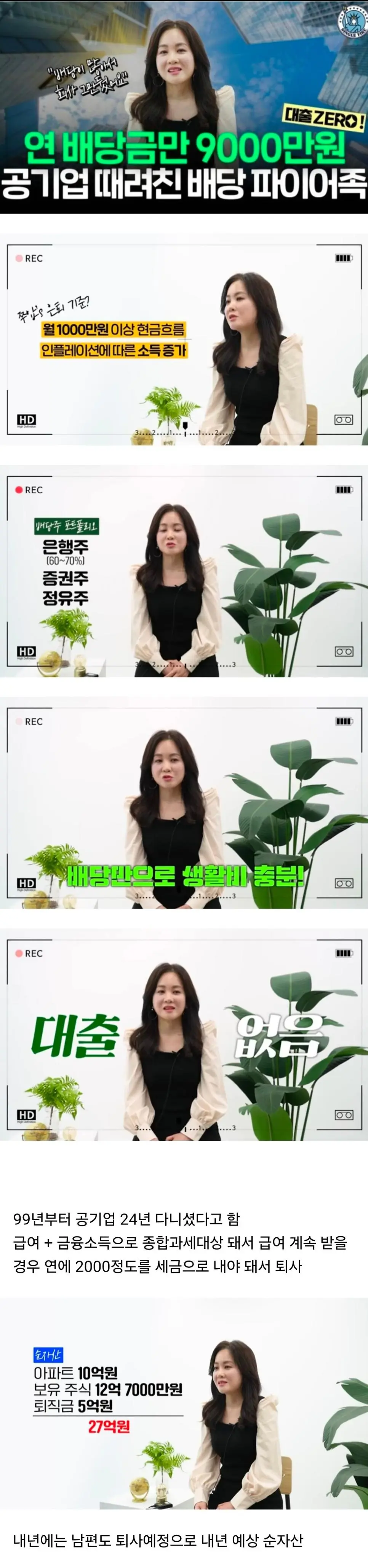 배당금으로 매달 1000만원 받는 파이어족 여성