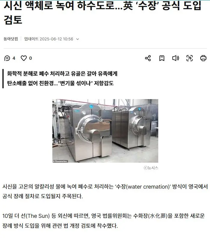 영국에서 공식 도입 추진중인 시신 처리 방식