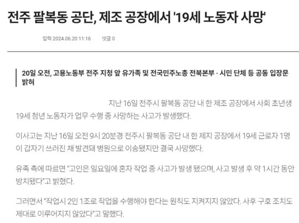 전주 제지공장 근무중 사망한 19세 노동자의 수첩