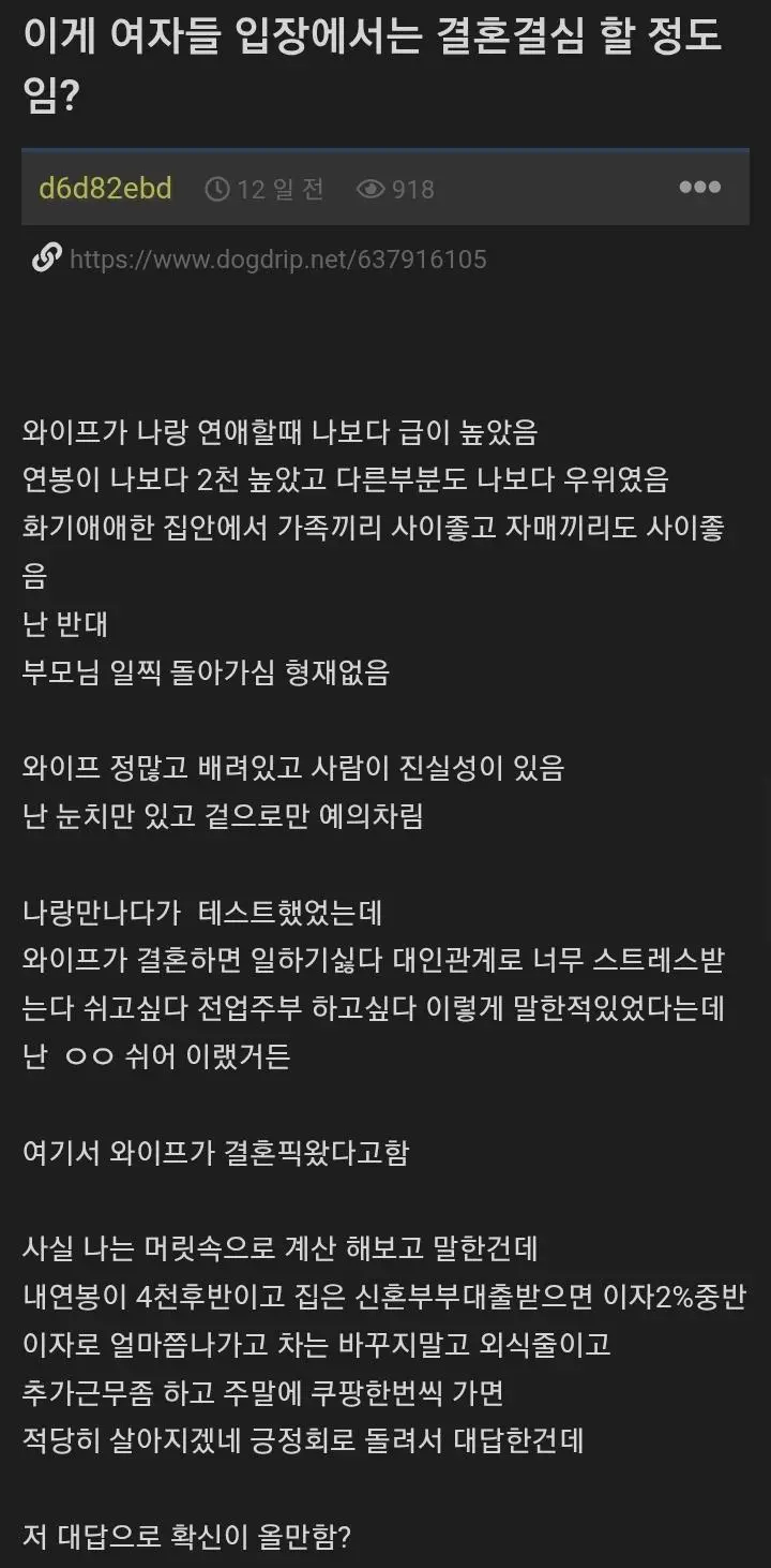 와이프가 결혼을 결심한 이유