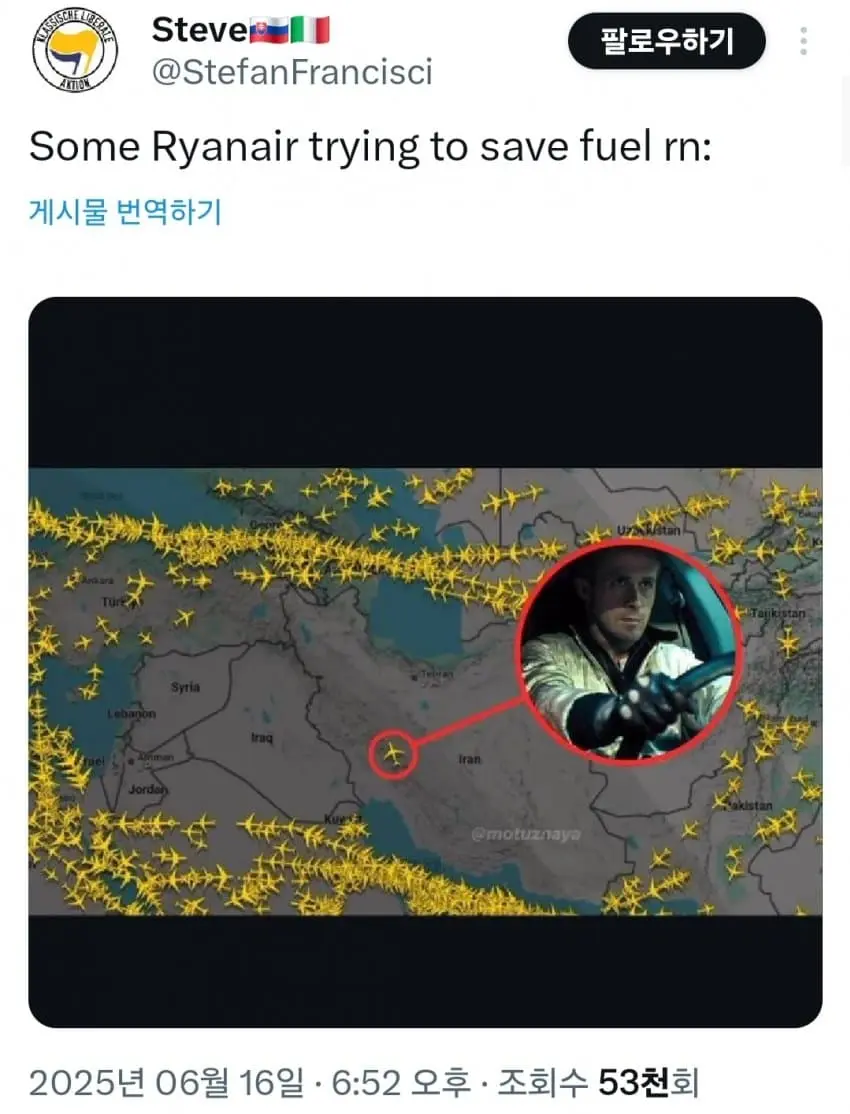 중동 전쟁 중 빠꾸없이 이란 비행중인 저가 항공사
