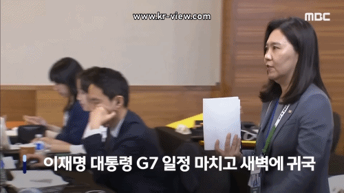 이재명 대통령과 함께 G7 정상회의 일정을 마치고 새벽에 귀국한 강유정 대통령실 대변인.