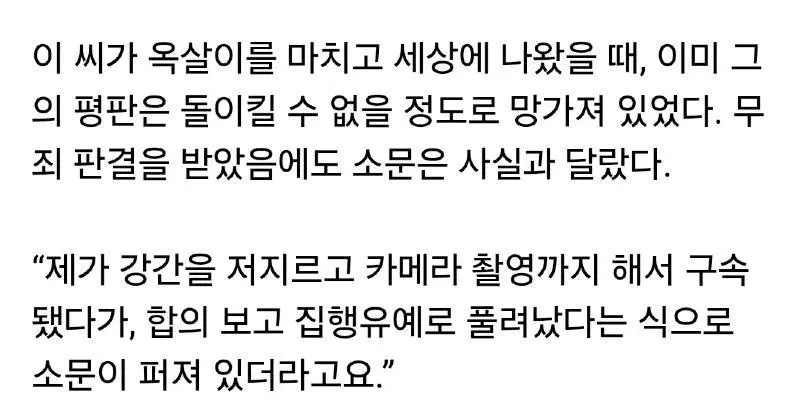 성폭행 누명 벗기위해 옥살이 택한 남자