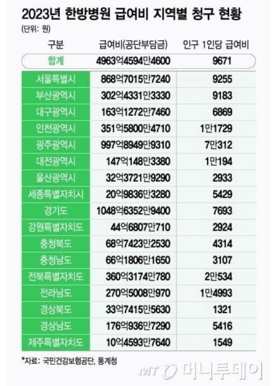 광주에 한방병원 많더니…1인당 건보 급여비 '7배' 빠져나갔다