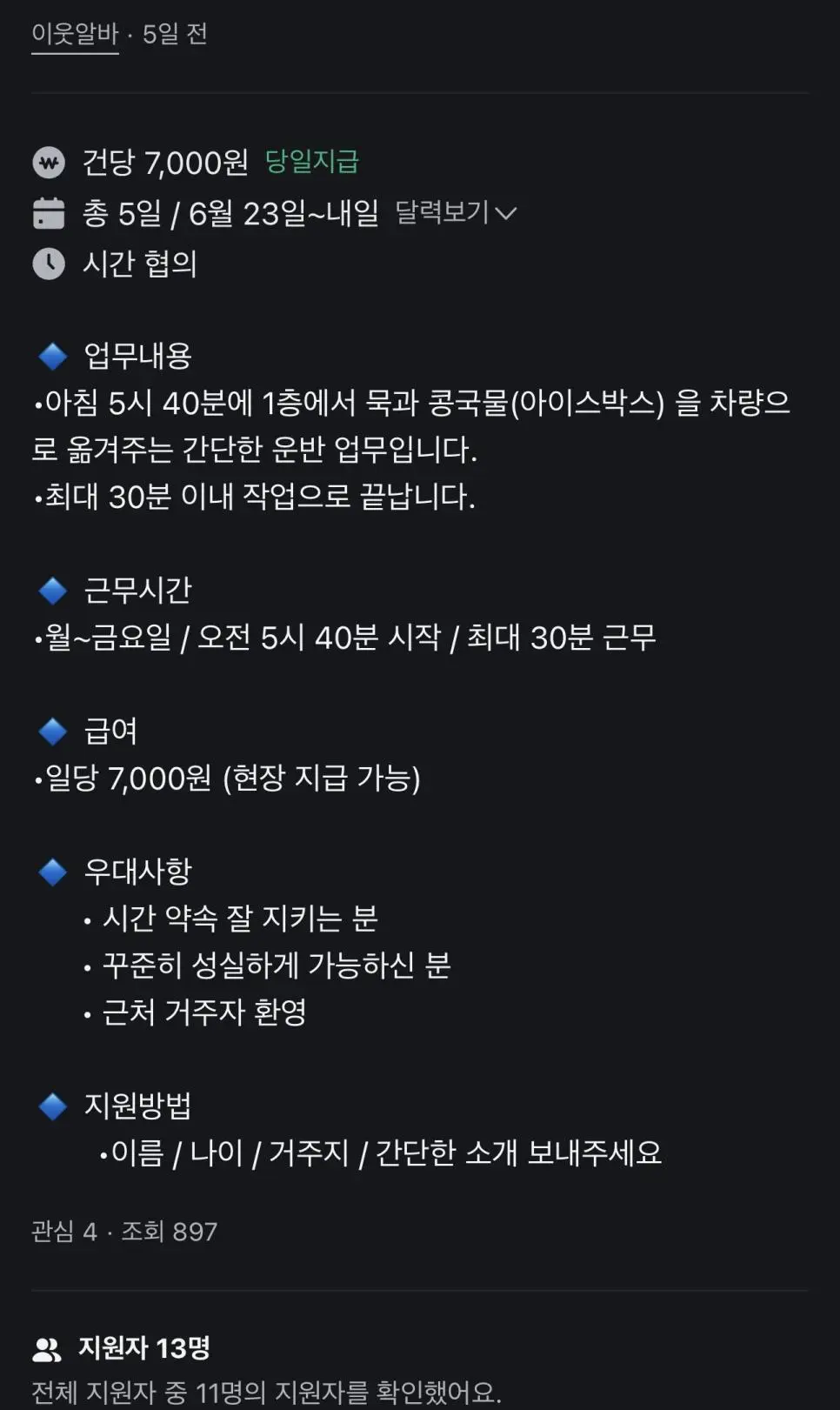 7천원 당근 알바 근황