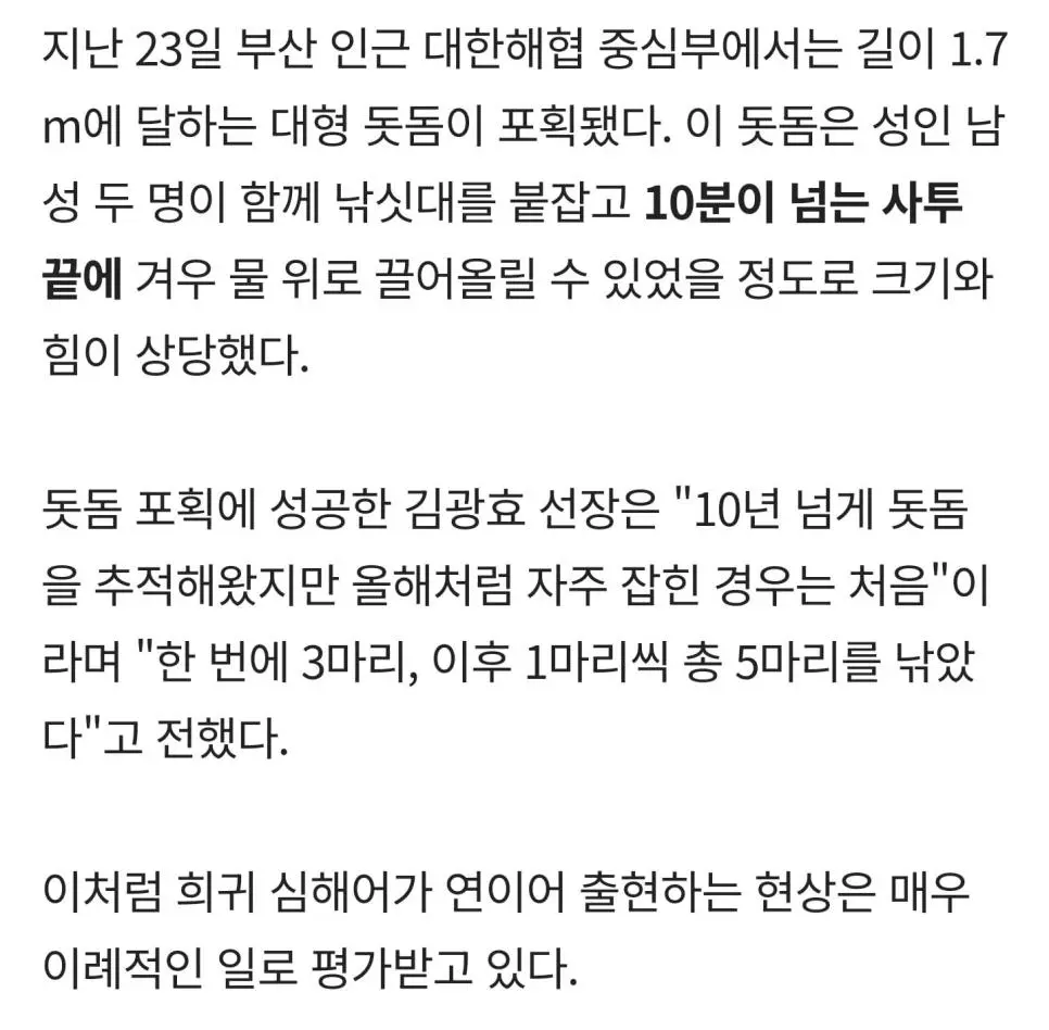 최근 부산 앞바다에서 자주 잡히고 있는 심해어