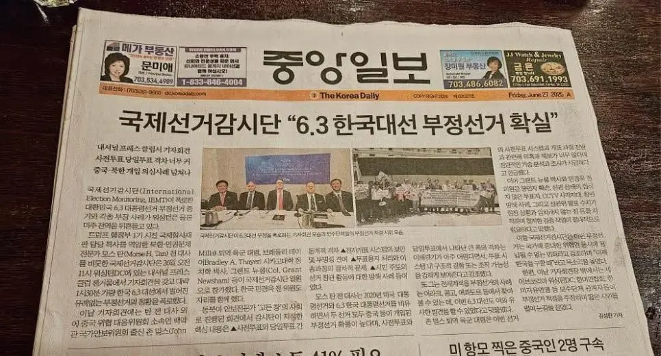 미주중앙일보 27일자 헤드라인 ㄷㄷㄷ