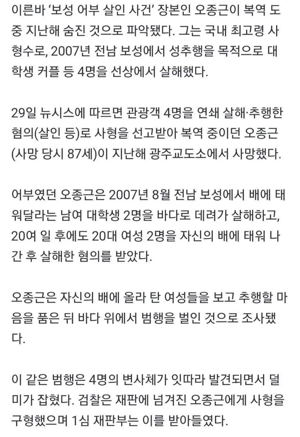 “보성 어부 살인 사건” 오종근 감옥에서 사망