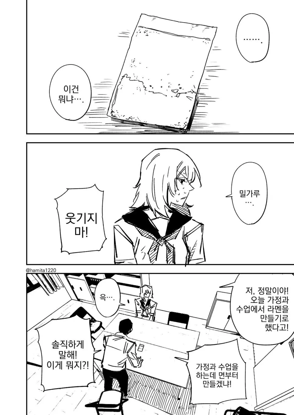"우와, 맛있다! 이 라면 국물 비결이 뭐예요?"
