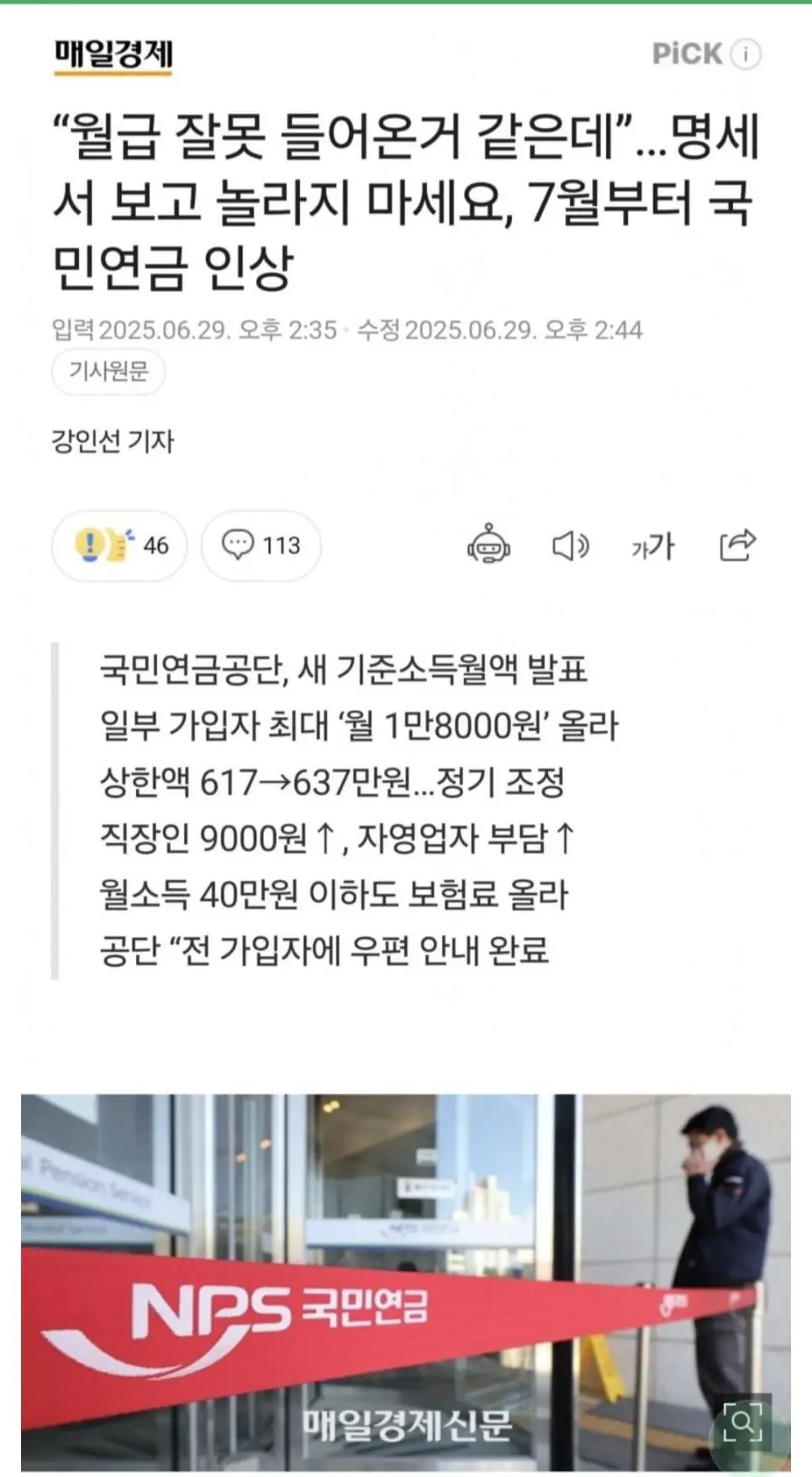 7월부터 월급 명세서 보고 놀라지 마세요, 국민연금 7월부터 인상