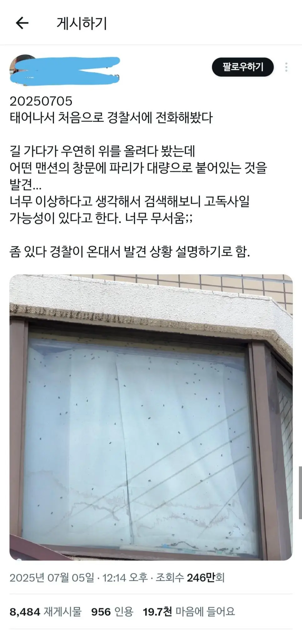 창문에 파리가 너무 많아서 경찰에 신고한 사람