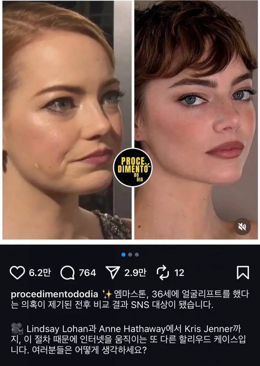 안면거상 이마거상 (눈썹과 눈사이가 멀어짐) 했을거라 추정중