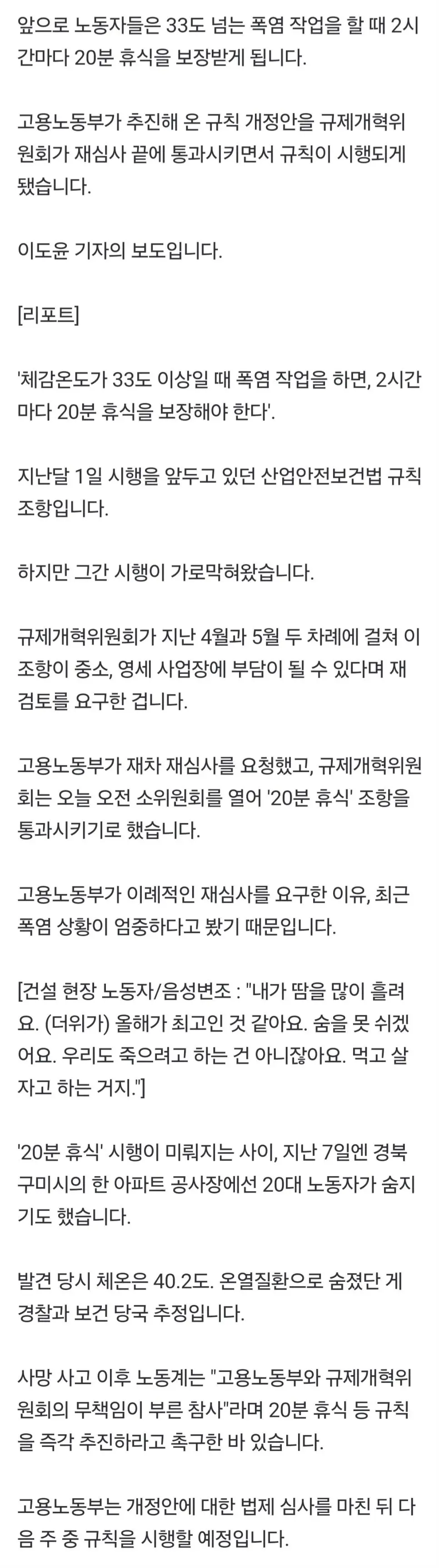 삼고초려만에... '폭염 작업 20분 휴식' 다음 주부터 의무화