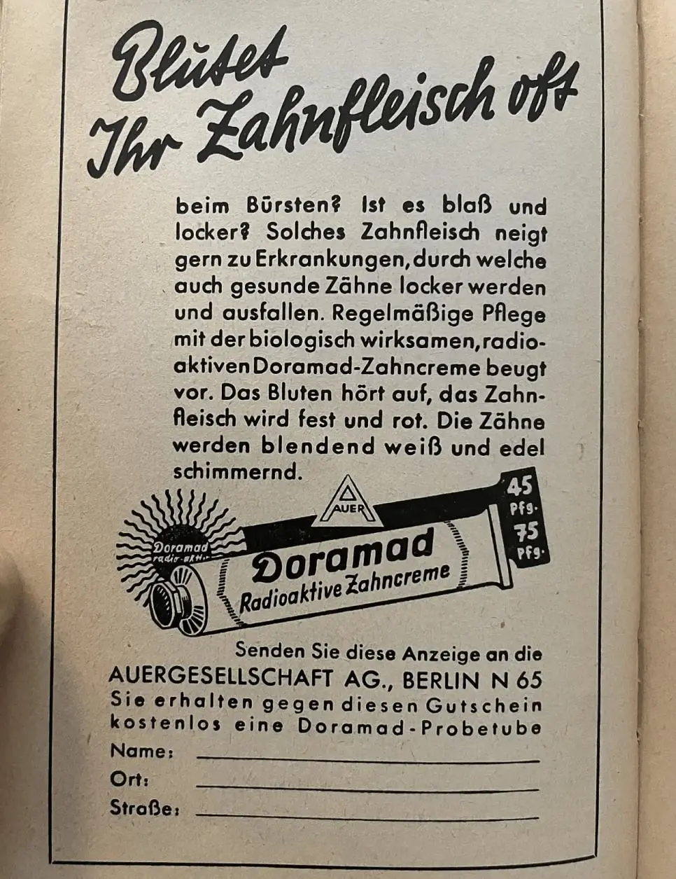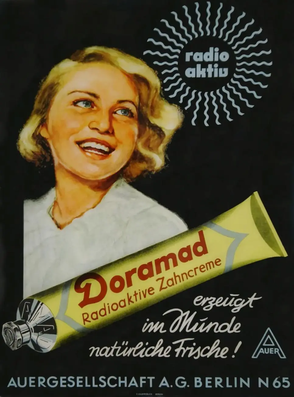 독일 베를린에 위치한 Auergesellschaft 사는 1940년부터 방사능 치약인 Doramad를 판매함.