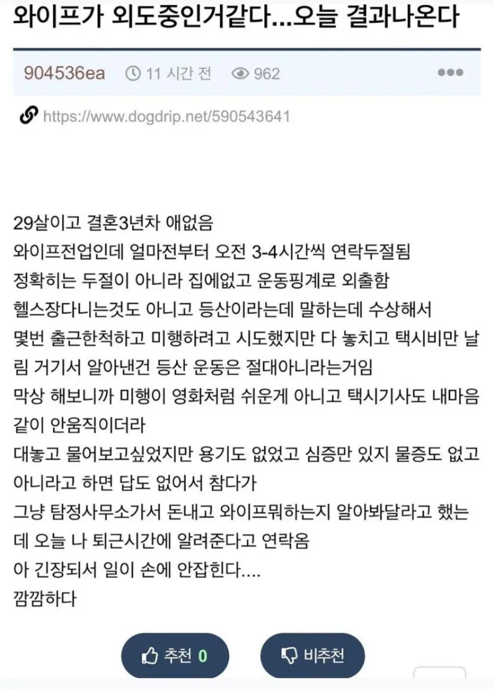와이프 불륜 의심돼서 탐정 고용한 결과