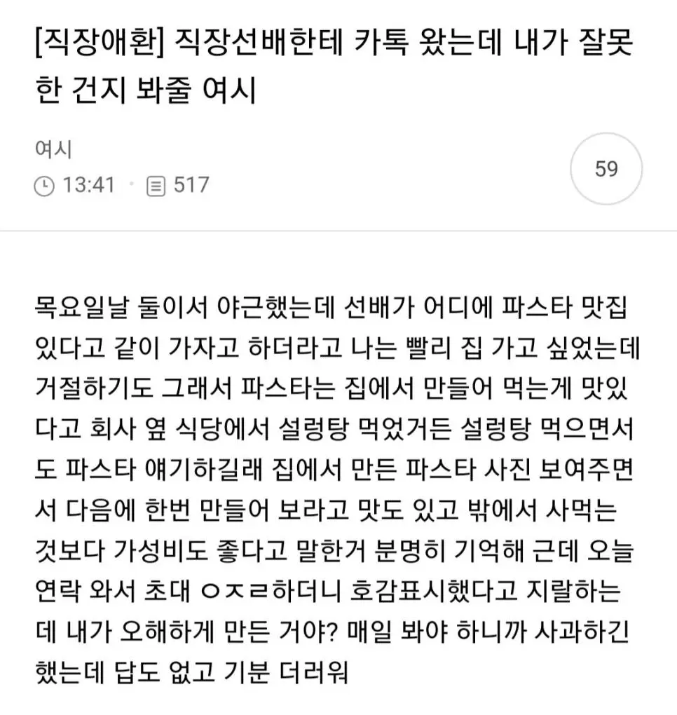 직장선배한테 카톡왔는데 내가 잘못한걸까