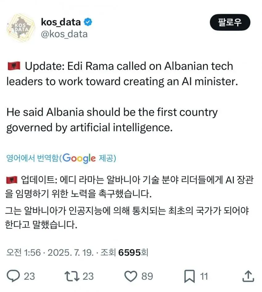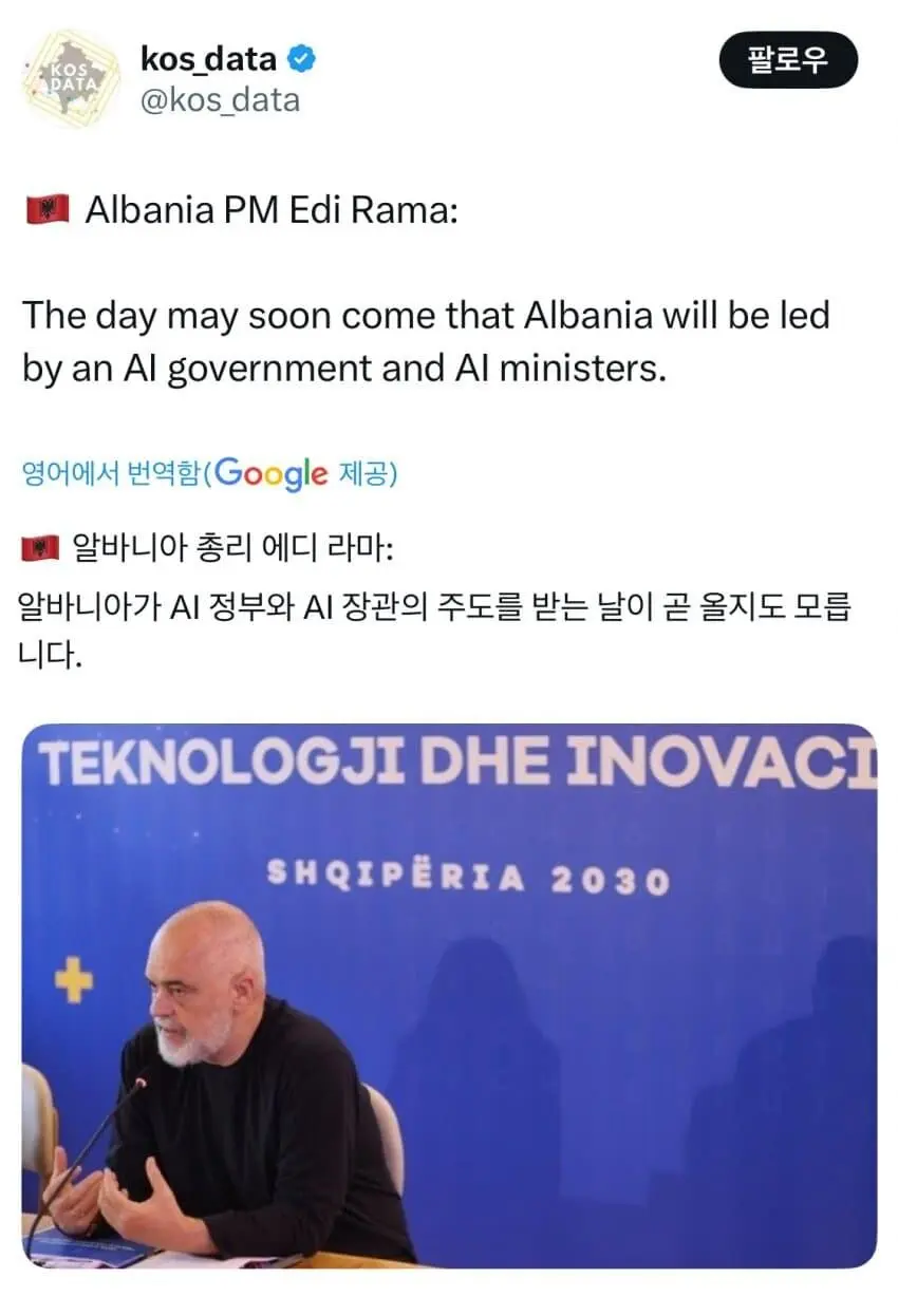 알바니아 총리 “Ai가 알바니아를 통치해야”