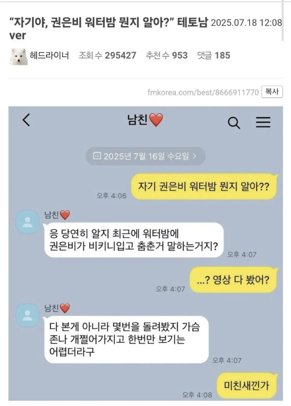 "자기야, 권은비 워터밤 뭔지 알아?" 테토남