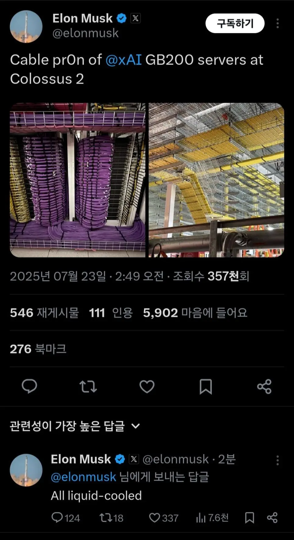 데이터센터 선 정리 잘했다고 자랑하는 일론 머스크