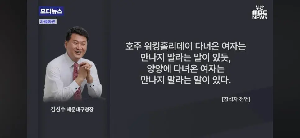 해운대구청장 양양 발언 논란 ㄷㄷ