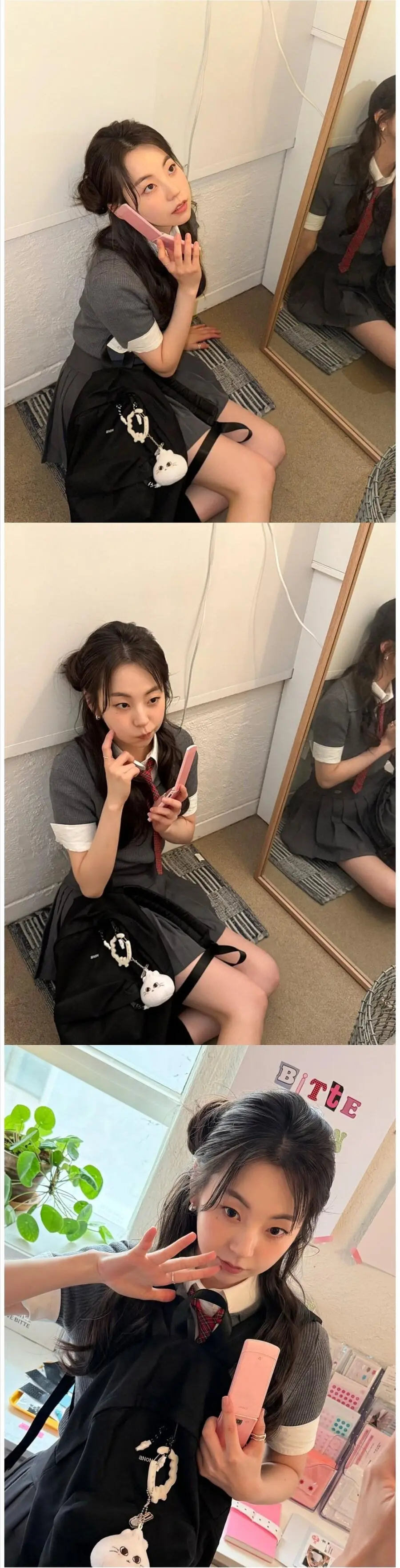 트와이스 사나 회색 털 란제리룩