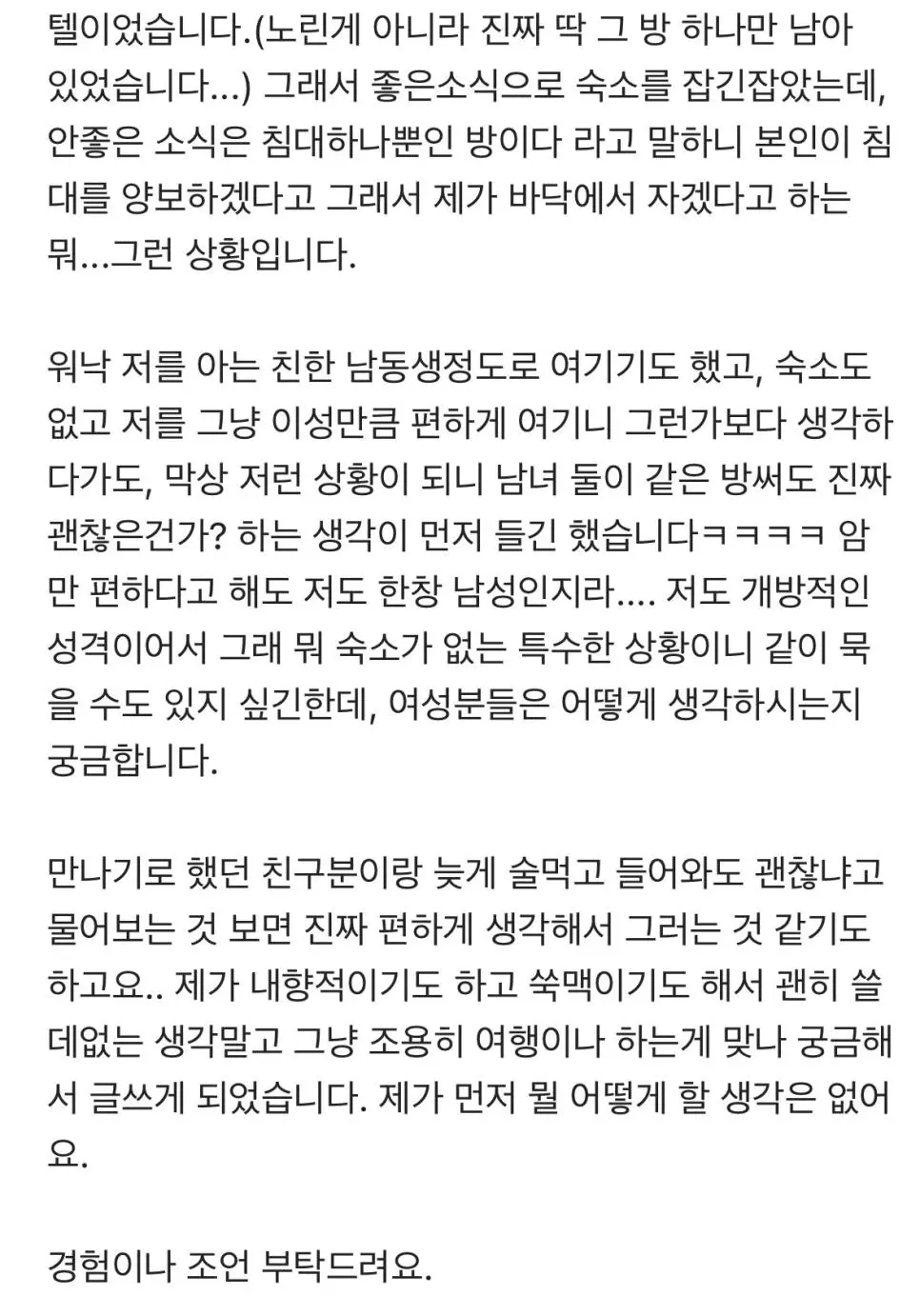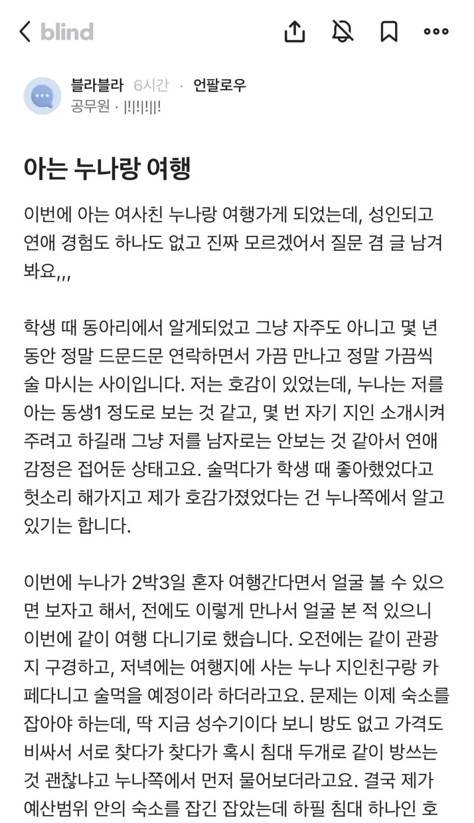 아는 누나랑 여행가게되었는데 고민인 내향적 공무원