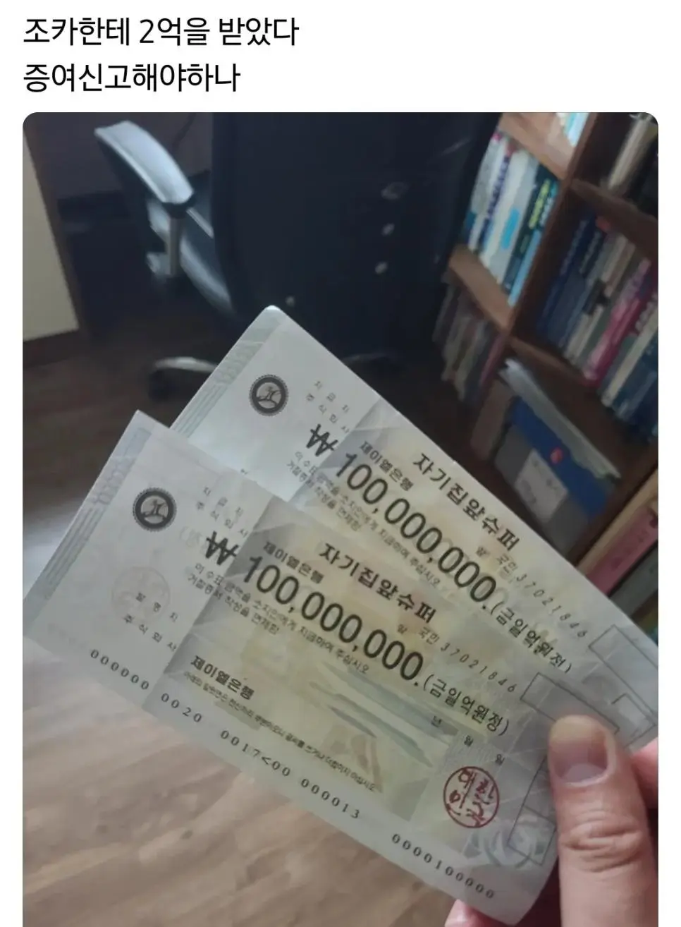 조카분에게 2억 자기앞슈퍼 받은 사람