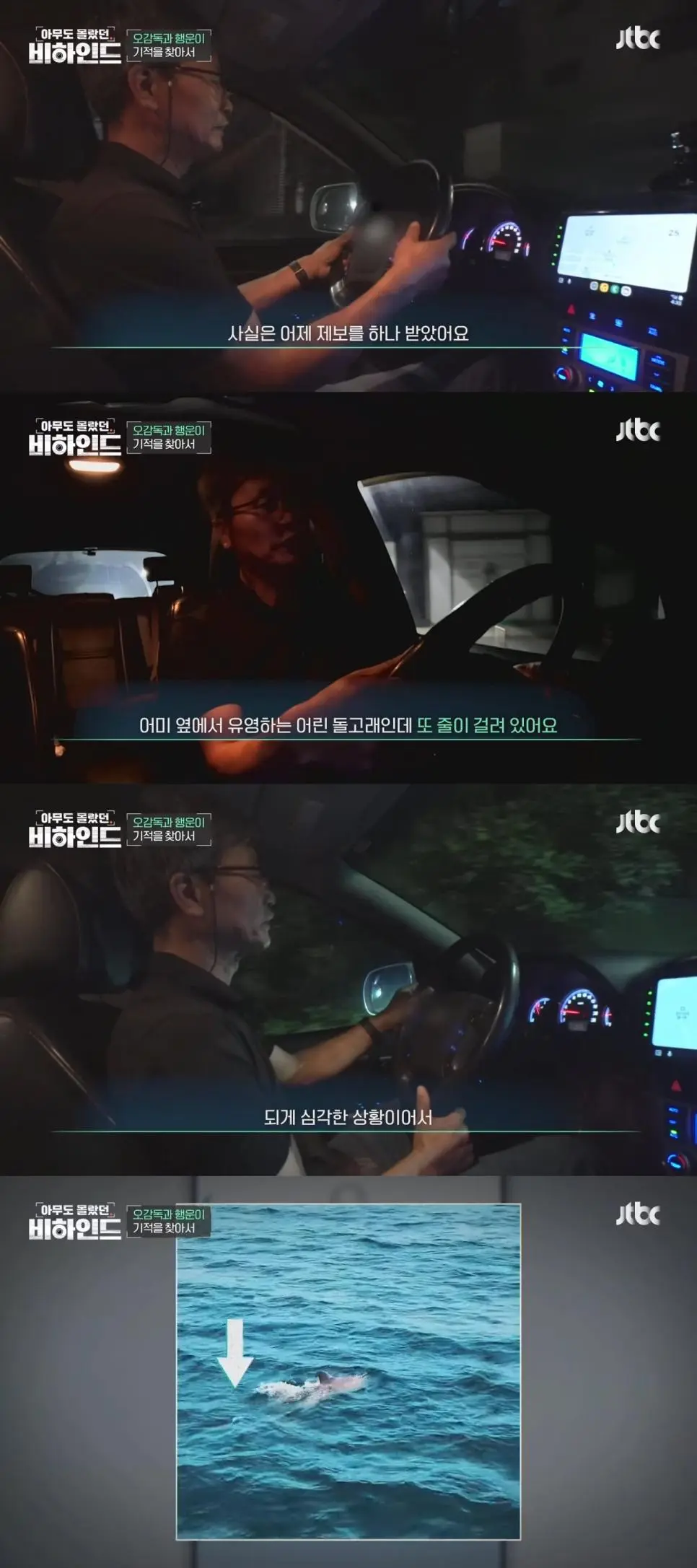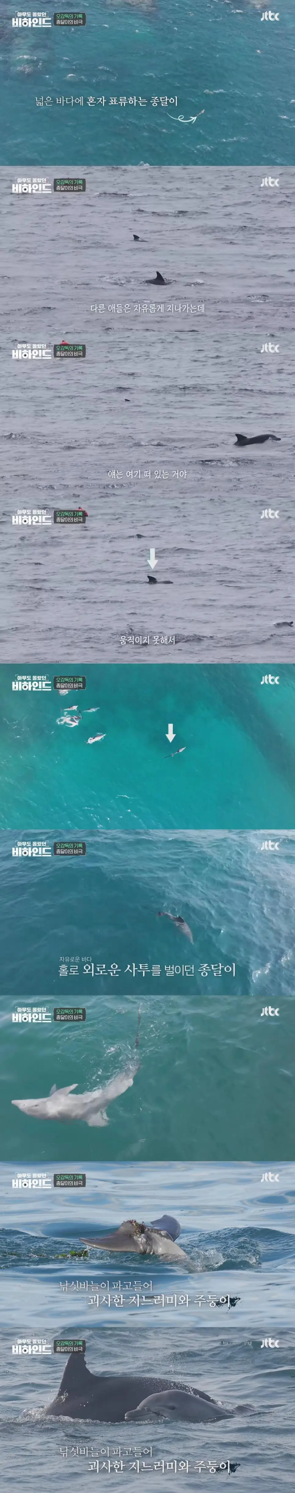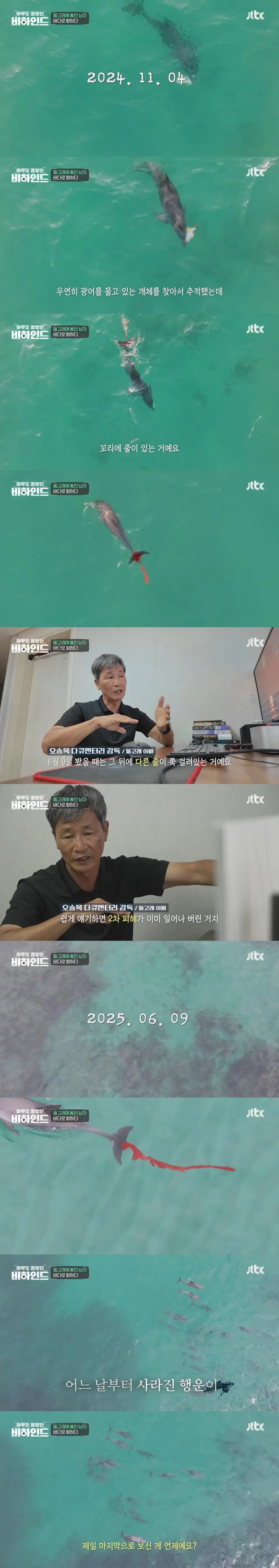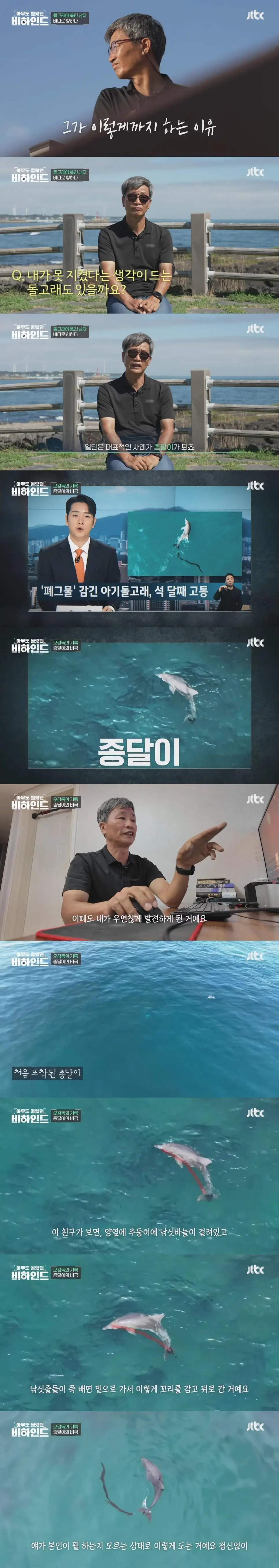 인간이 버린 쓰레기에 걸려 고통 받는 돌고래들을 따라다니는...