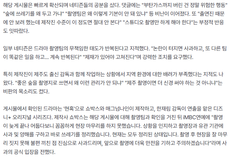 디즈니+ '현혹' 촬영팀, 제주 숲에 쓰레기 무단 투기 논란에 "사과" [공식입장]