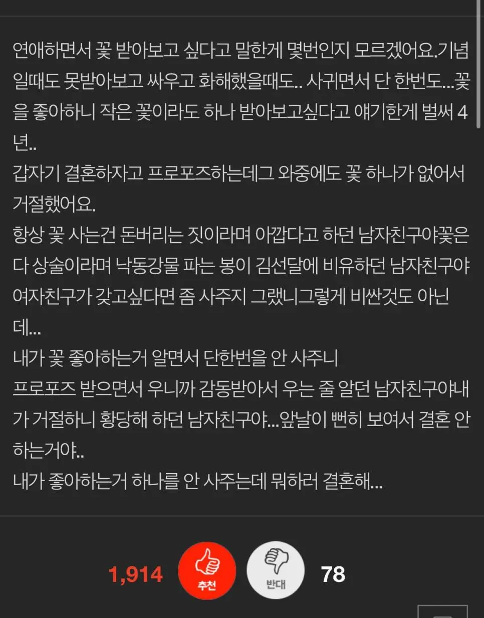 4년 사귄 여자가 프로포즈 거절한 이유