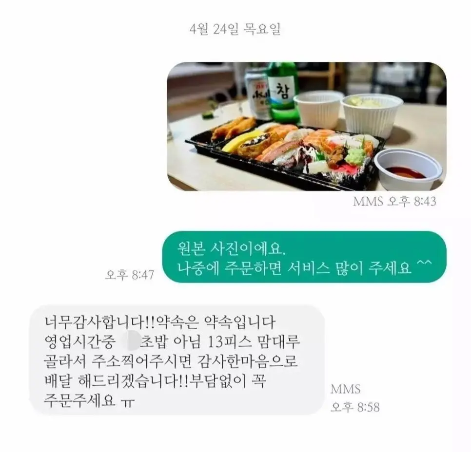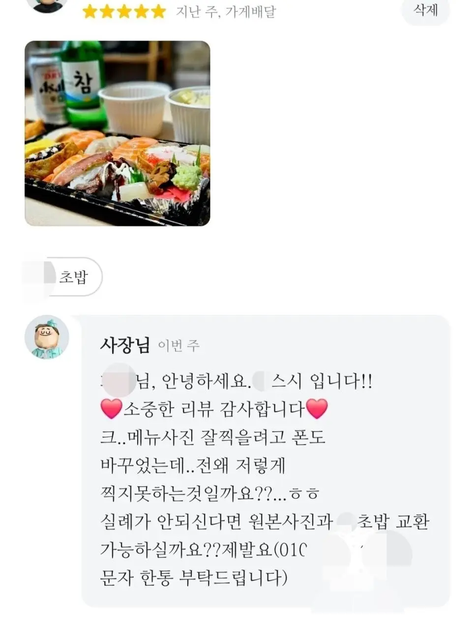 리뷰사진을 초밥 13개랑 교환하자는 사장님