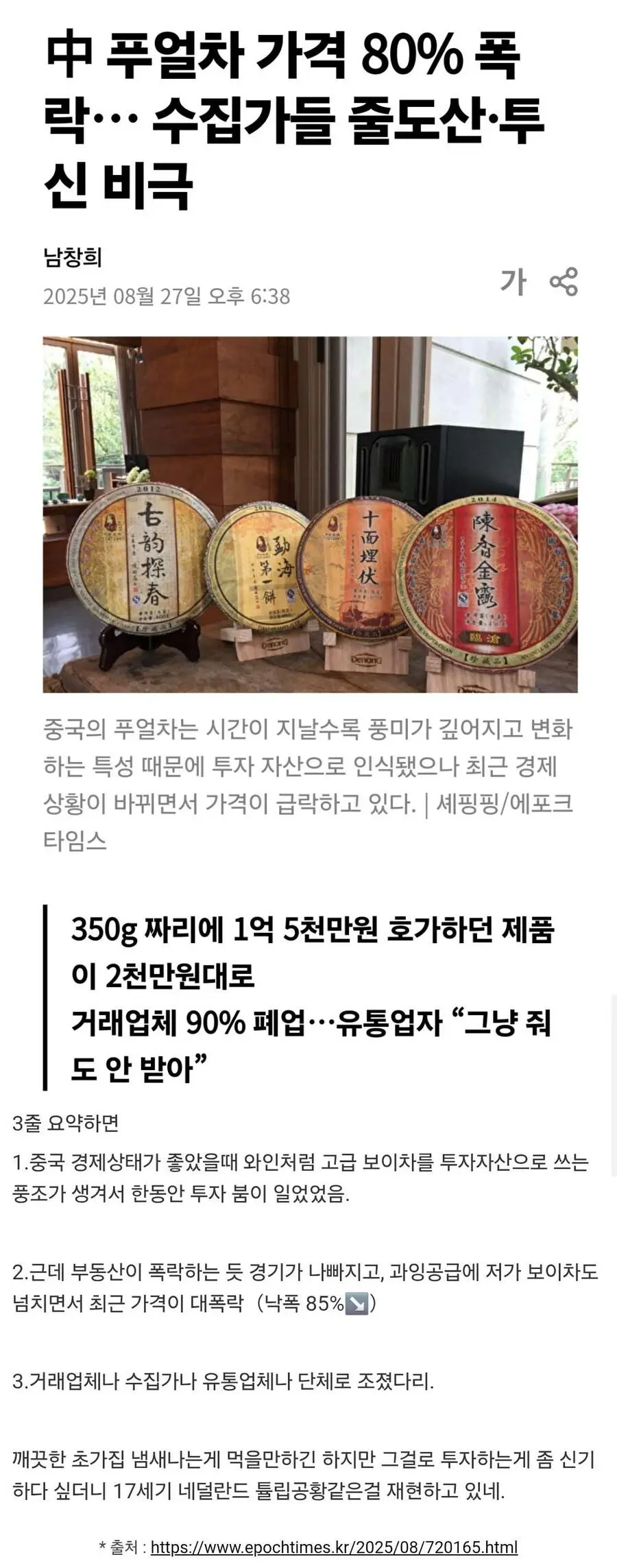 박살난 중국 보이차 시장