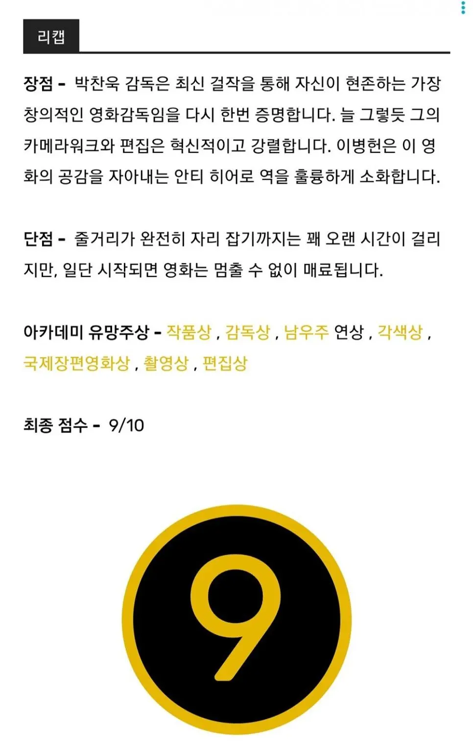 아가씨 , 헤어질 결심이 최종 85점