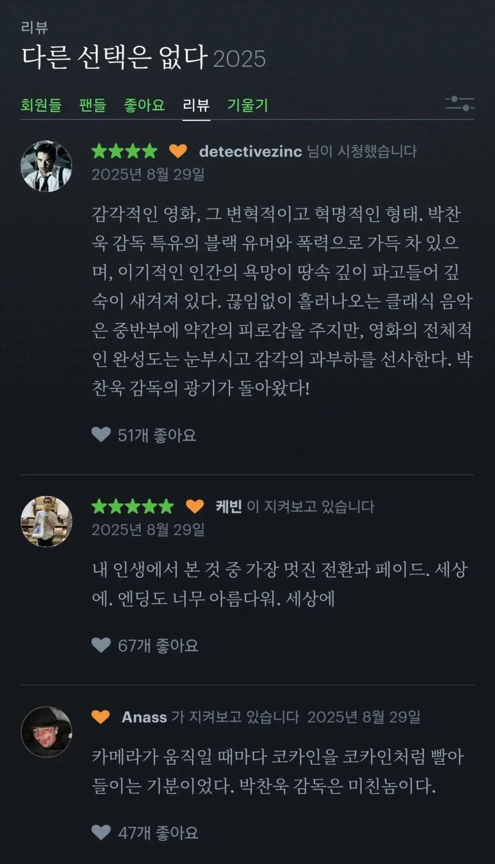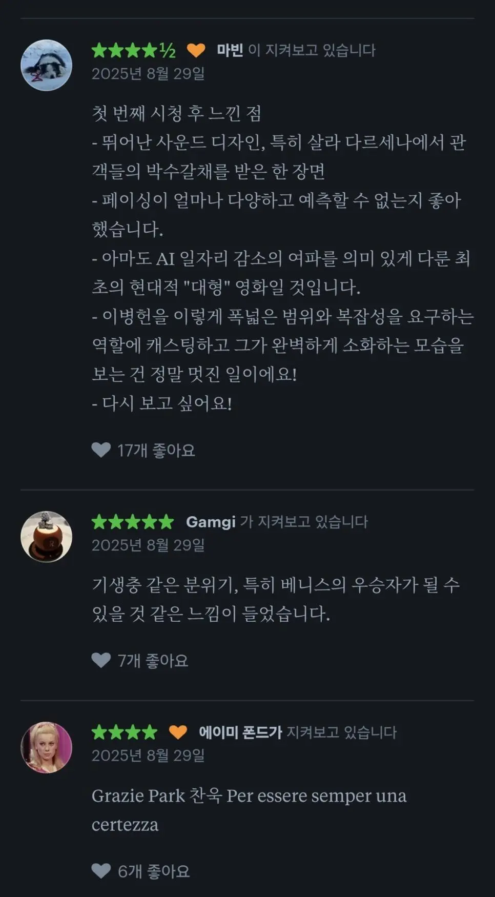 베니스국제영화제 시사회가 있었는데 영미권 최대 영화 평론 사이트 레터박스에서 대호평 받고 있으며, (평점 냉철하고 짜기로 유명) 로튼토마토 신선도 100프로 유지중이라고 한다.
