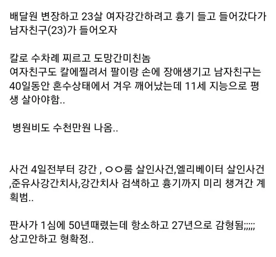 반성했다고 형량 23년 깎아줌ㄷㄷㄷㄷ