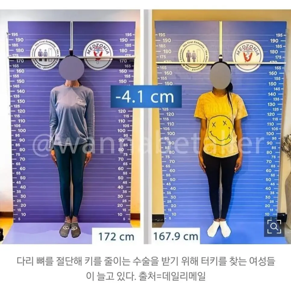 일부 튀르키예의 병원에서는 허벅지뼈와 종아리뼈의 일부를 절단하는 방식으로 키를 줄이는 수술을 제공하고 있으며 수술과 입원뿐만 아니라 무료 도시 투어, 레스토랑 식사, 보트 여행까지 포함된 패키지로 환자들을 끌어모으고 있다고 매체는 전했다.
