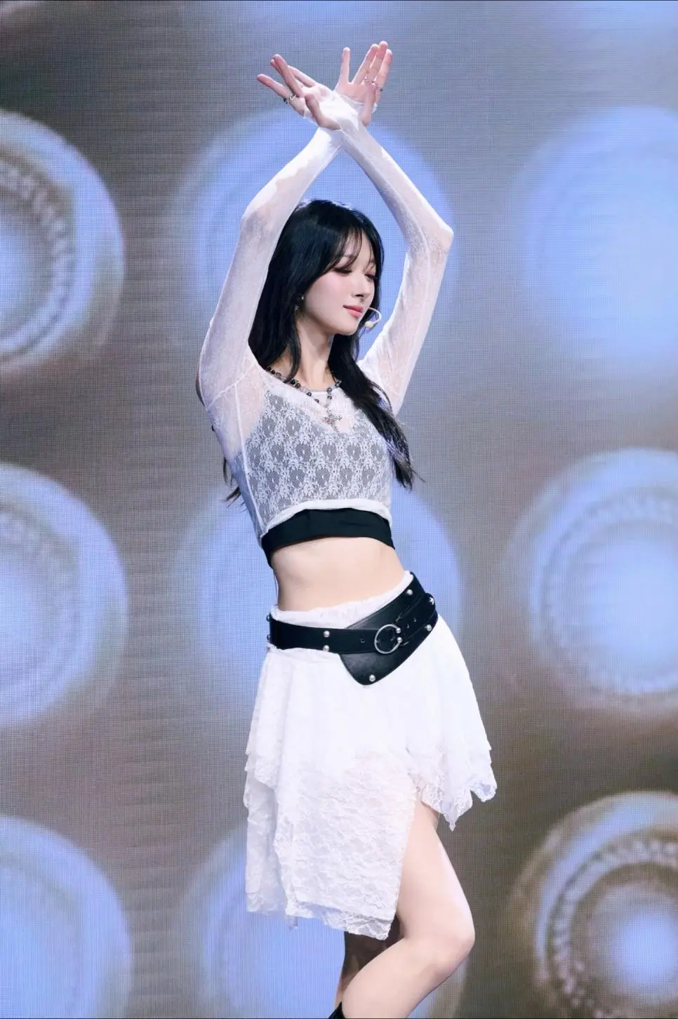 귀여운 양갈래 안유진 체크스커트