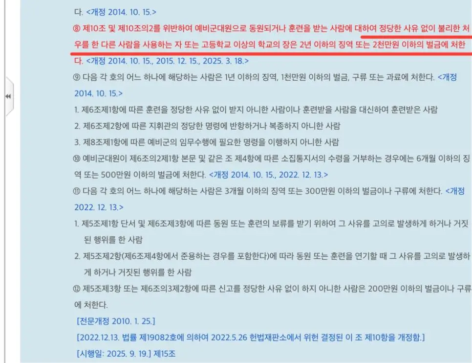 9월 19일부터 바뀐다는 예비군법 근황