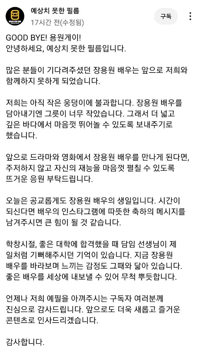 용원게이 배우 장용원 근황