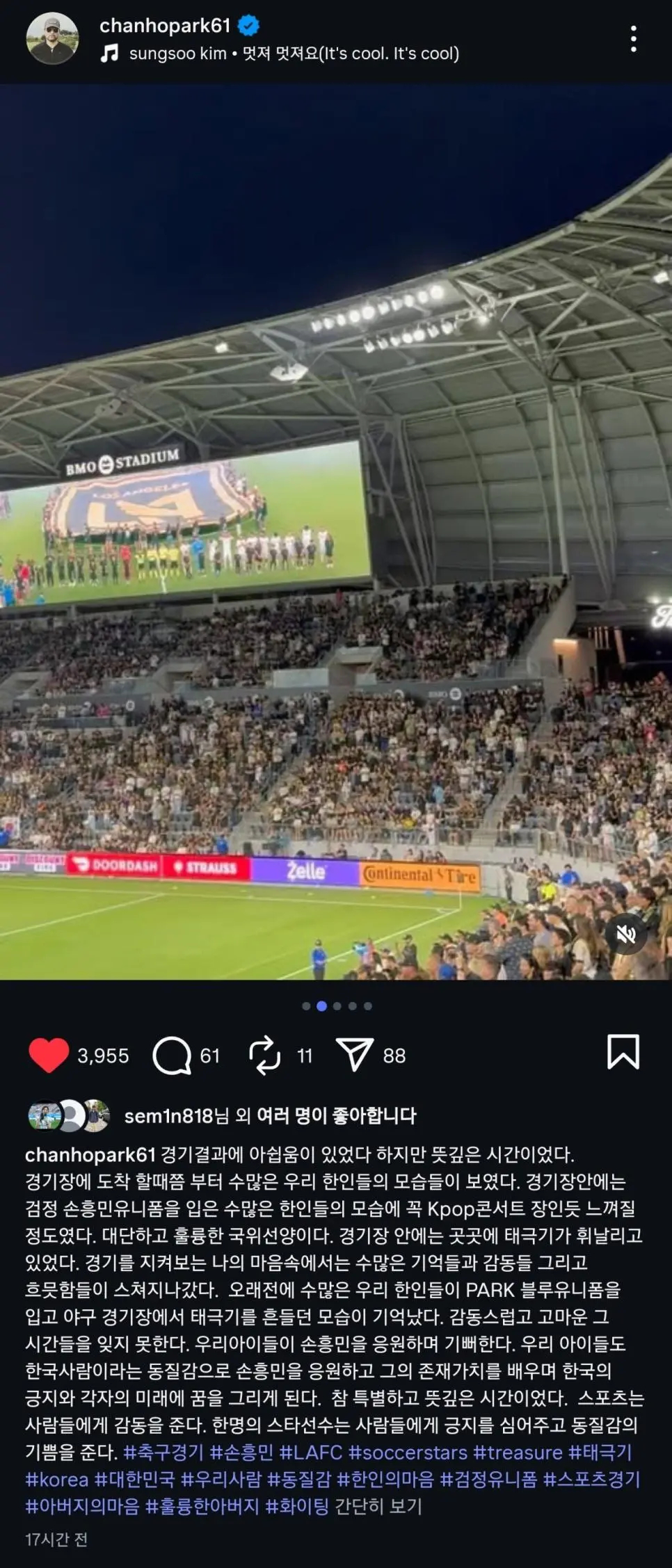 손흥민 경기 직관 후기 남긴 박찬호... ㄷㄷㄷ
